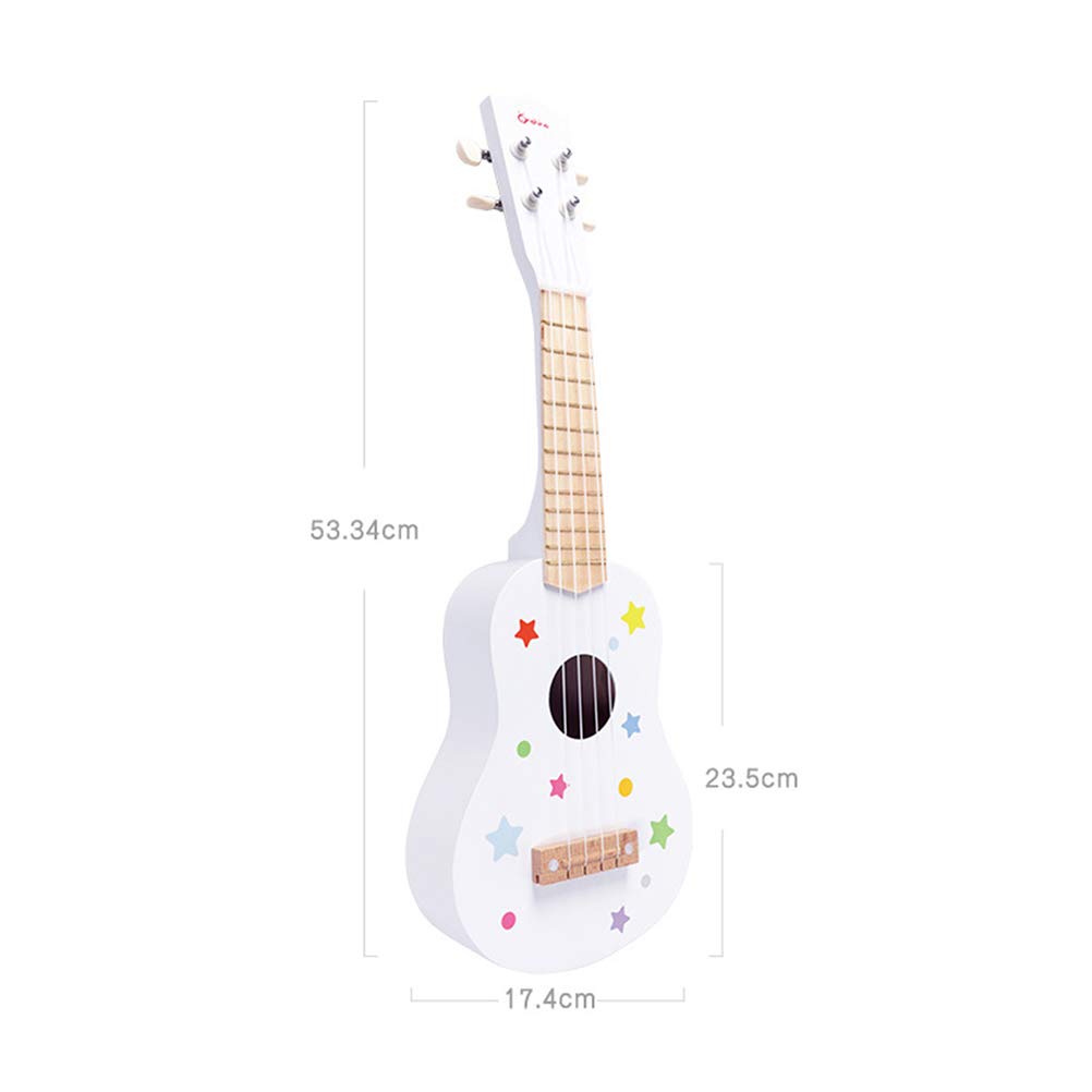 White Toy Acoustic Guitar - 55cm Long 4 Tight Tunable String Party Play Rock Music Guitar Toy For Kids White White