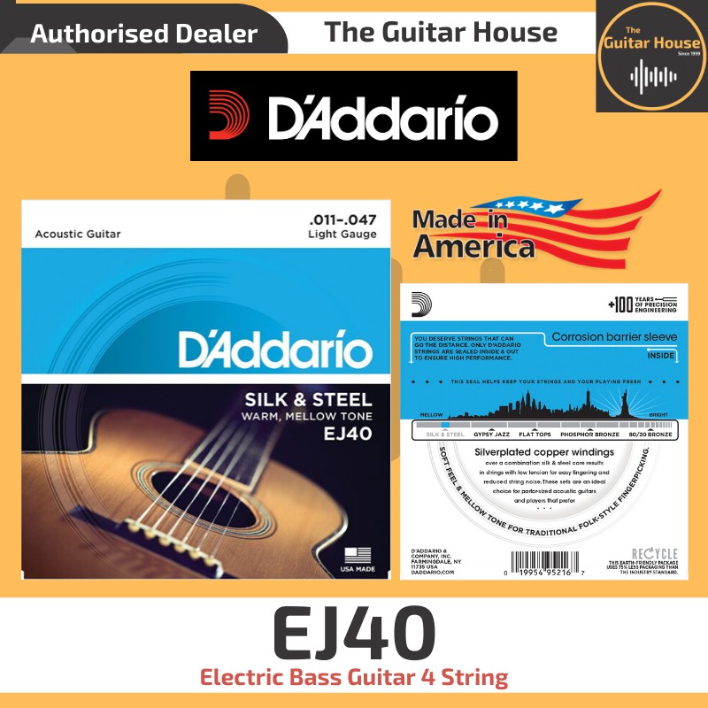 Silk And Steel Light Acoustic Guitar Strings - D Addario Ej40 Silk And Steel Folk Acoustic Guitar Strings 011 047 Music Bliss Malaysia