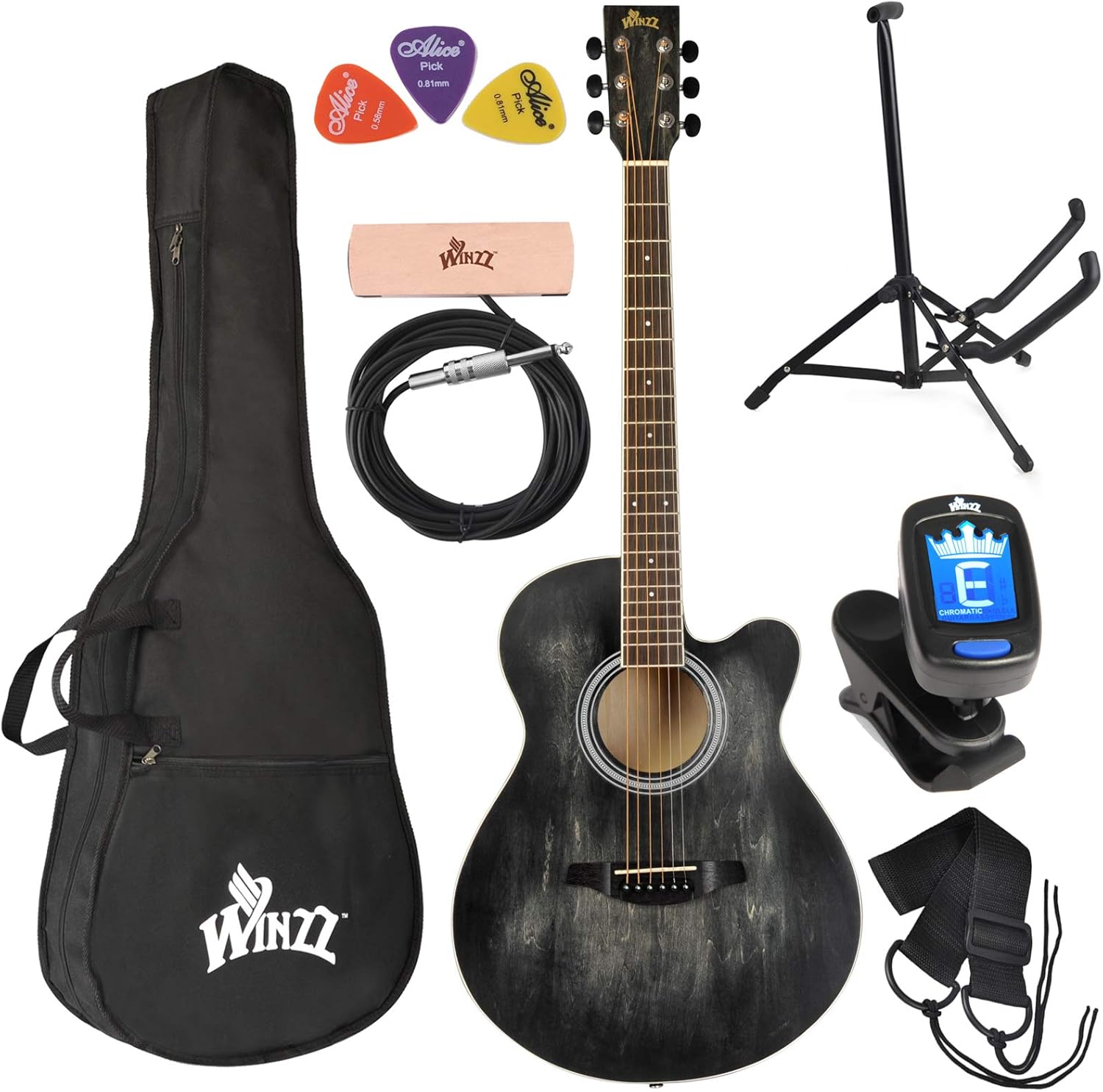 40 Inch Acoustic Guitar - Amazon Com Winzz 40 Inches Cutaway Acoustic Guitar Beginner Starter Bundle With Padded Bag Stand Tuner Pickup Strap Picks Black Musical Instruments