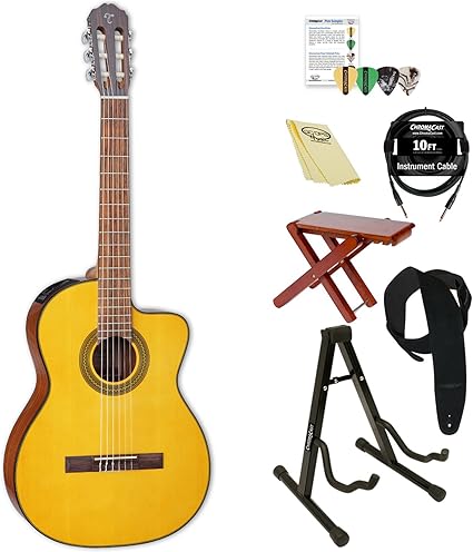 Classical Acoustic Electric Guitar - Amazon Com Takamine Gc1ce Nat Kit 2 Classical Acoustic Electric Guitar With Chromacast Accessories Natural Musical Instruments