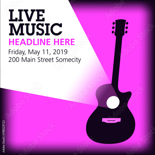 Light Pink Acoustic Guitar - Cool Live Acoustic Guitar Show Graphic With Space For Text In Light Beam Use As Guitar Event Design For Flyer Poster Invitation Buy This Stock Vector And Explore Similar Vectors At