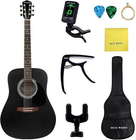 Huawind Acoustic Guitar 40 - Huawind Acoustic Guitar Package 41inch Full Size 4 4 Spruce Top Guitar With Gig Bag Tuner Capo Steel String Cleaning Cloth Picks Guitar Hanger Natural Spruce 41 Inch Black Dreadnought Amazon Ca Musical Instruments Stage Studio