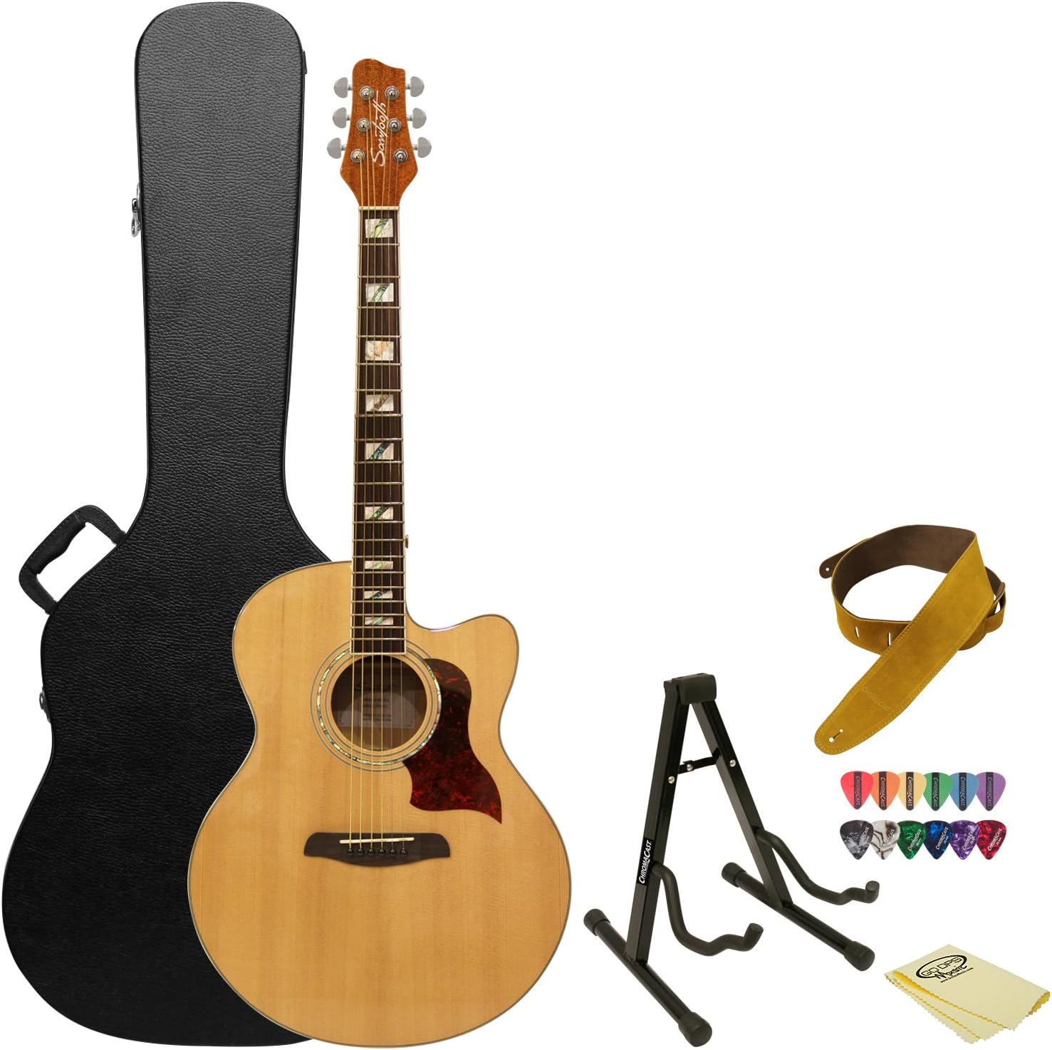 Sawtooth Acoustic Guitar - Amazon Com Sawtooth Maple Series Acoustic Electric Cutaway Jumbo Guitar With Hard Case And Accessories Musical Instruments