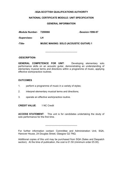 Solo Acoustic Guitar - Music Making Solo Acoustic Guitar 1 Scottish Qualifications