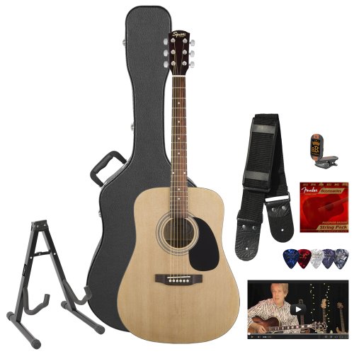 Squire By Fender Acoustic Guitar - Squier By Fender Sa 50 Dreadnought Acoustic Guitar W Strings Strap Tuner Stand Picks Hard Case Online Lesson David N Schneckjer