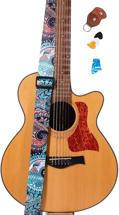 Blue Guitar Straps Acoustic - Vintage Woven Guitar Strap For Acoustic And Electric Guitars With 2 Ru Kliq Music Gear