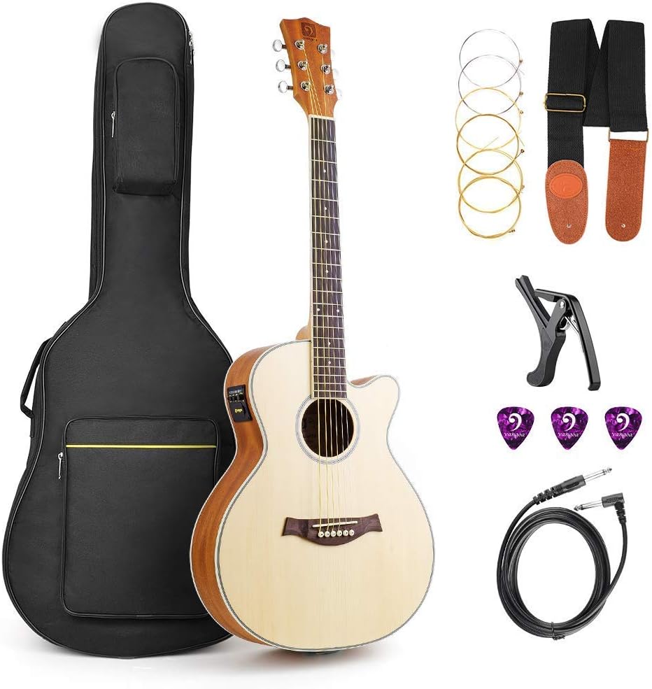Vangoa Acoustic Guitar - Amazon Com Electric Acoustic Cutaway Guitar Bundle 41 Inch 6 String Full Size Dreadnought Cutaway Acoustic Guitar With Gig Bag Natural High Gloss By Vangoa Musical Instruments