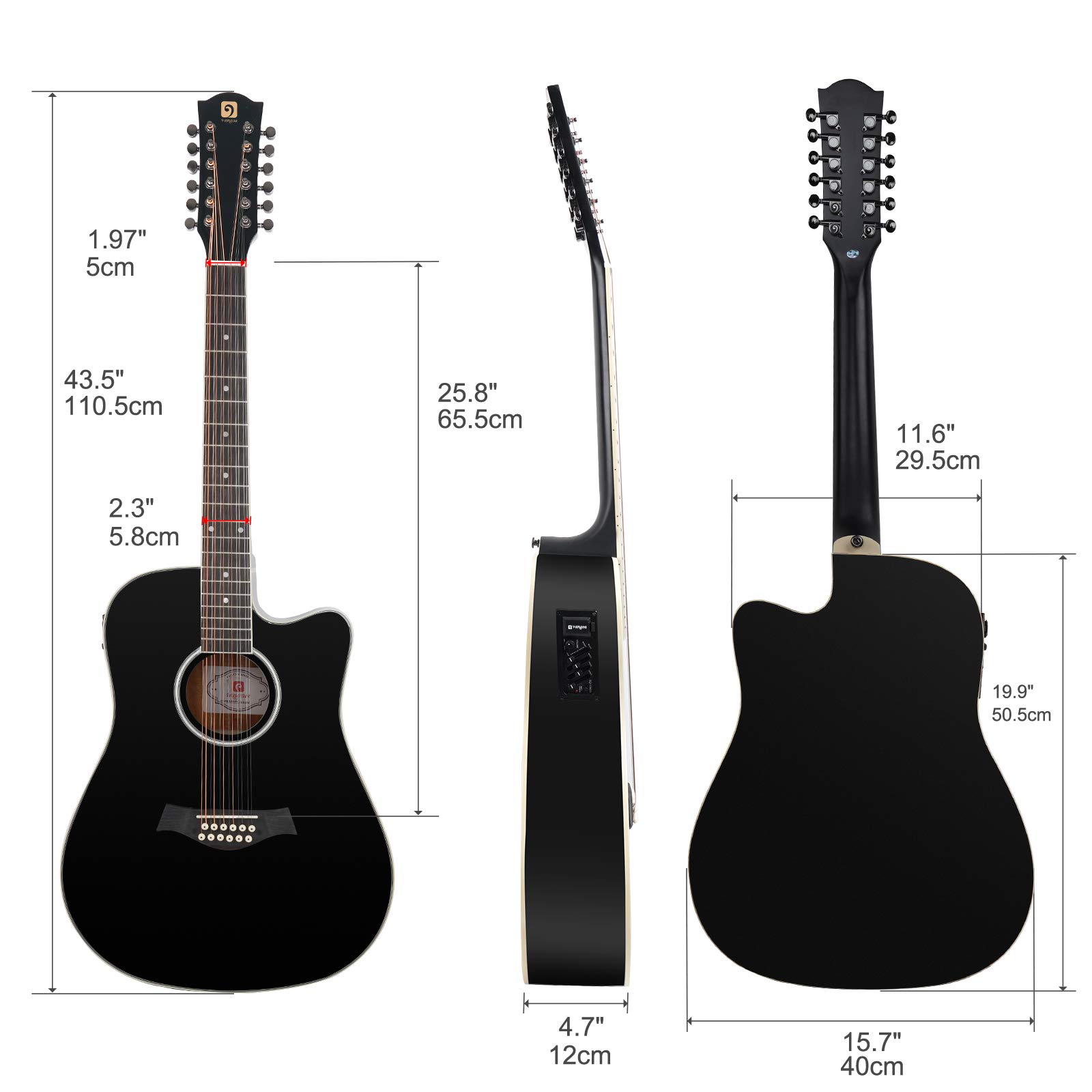 Vangoa Acoustic Guitar - Vangoa 41 Inch Full Size Black Vg 41ecbk Acoustic Electric Cutaway Guitar With Guitar Gig Bag Strap Tuner String Picks Capo Right Handed Vangoa