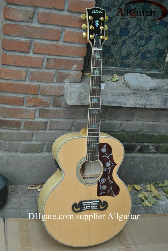 Natural Acoustic Guitar - Custom Shop J200 Natural Acoustic Guitar Solid Spruce Top Tiger Maple Neck Body Side Mic Pickups China Made Sign Acoustic Electric Guitar Best Acoustic Electric Guitar Under 1000 Best Electric Guitar From