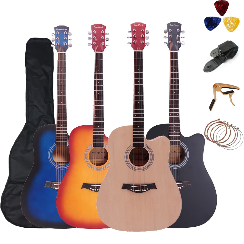 41 Inch Acoustic Guitar Case With Picks - Amazon Com 41 Inch Acoustic Guitar Set Full Size Cutaway Folk Guitar Bundles With Bag Pick Capo Strings Rosefinch Wooden Guitar For Beginners Adult Black Musical Instruments