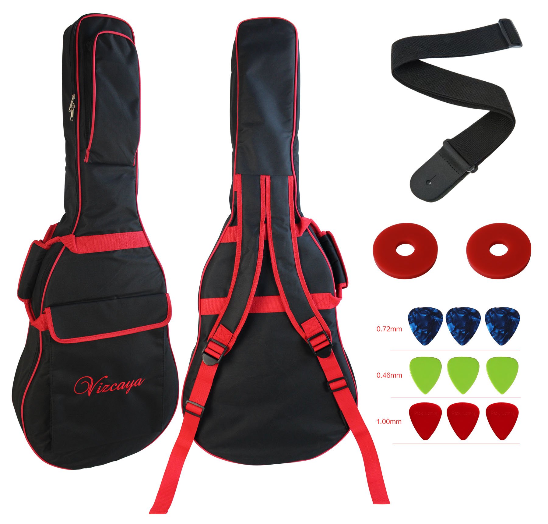 41 Inch Acoustic Guitar Case With Picks - Vizcaya 41 Inch Waterproof Dual Adjustable Shoulder Strap Acoustic Guitar Gig Bag 15mm Padding Backpack With Accessories Adult Guitar Strap Picks Strap Lock Black With Red Edge Best Music Bags