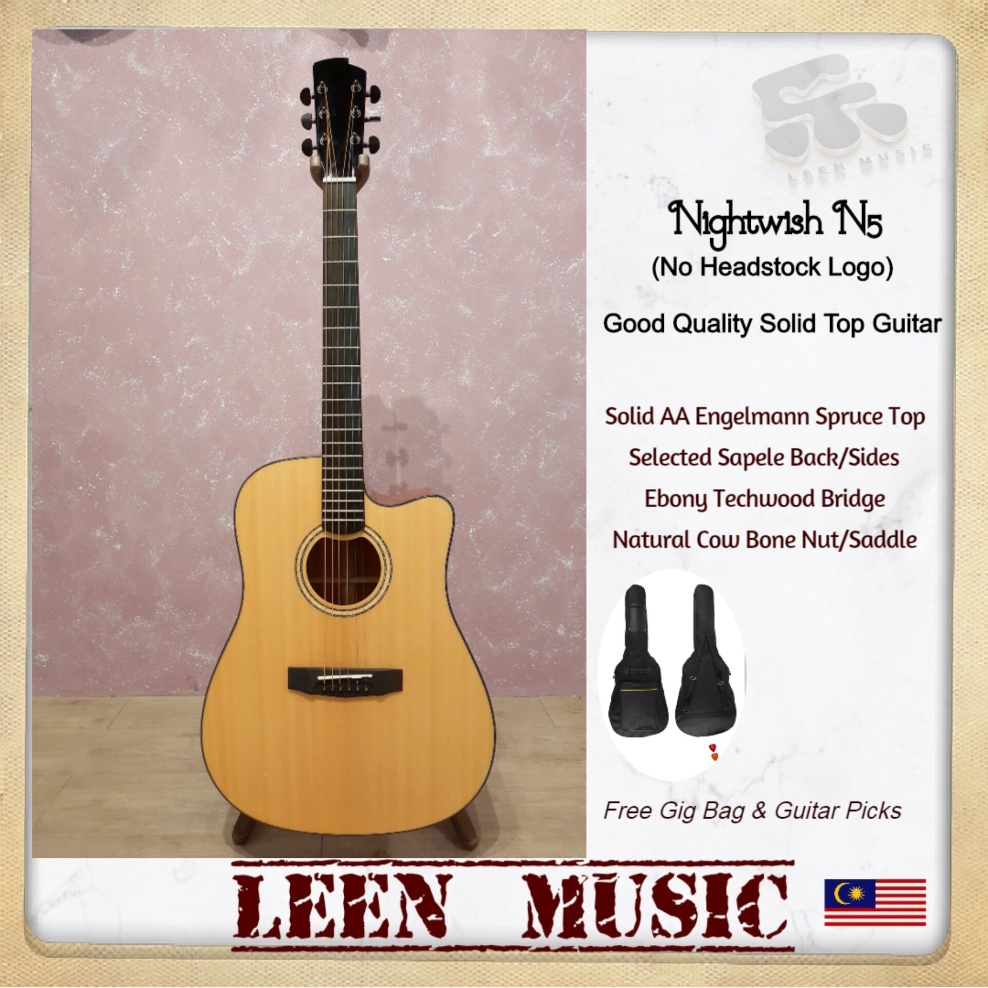 41 Inch Acoustic Guitar Case With Picks - Nightwish N5 Acoustic Guitar Solid Aa Grade Engelmann Spruce Top Free Bag Picks 41 Dreadnought Cutaway Good Quality Tone Leen Music Lazada