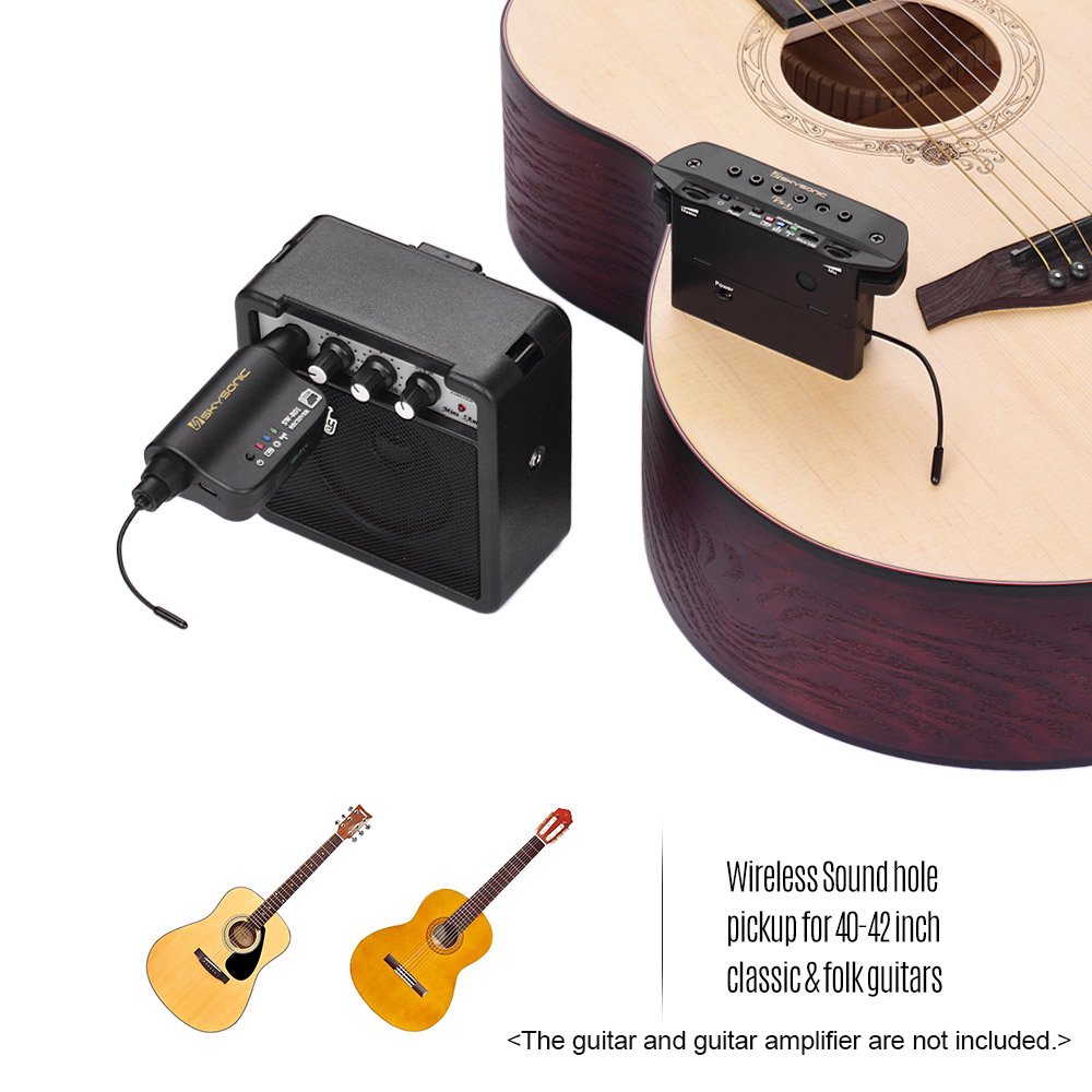 Wireless Acoustic Guitar Pickup - Skysonic Fs 1 Uhf Guitar Wireless Soundhole Pickup With Transmitter Receiver Magnetic Microphone Dual Pickup System Max 30m Transmission Range Built In Rechargeable Battery Walmart Canada