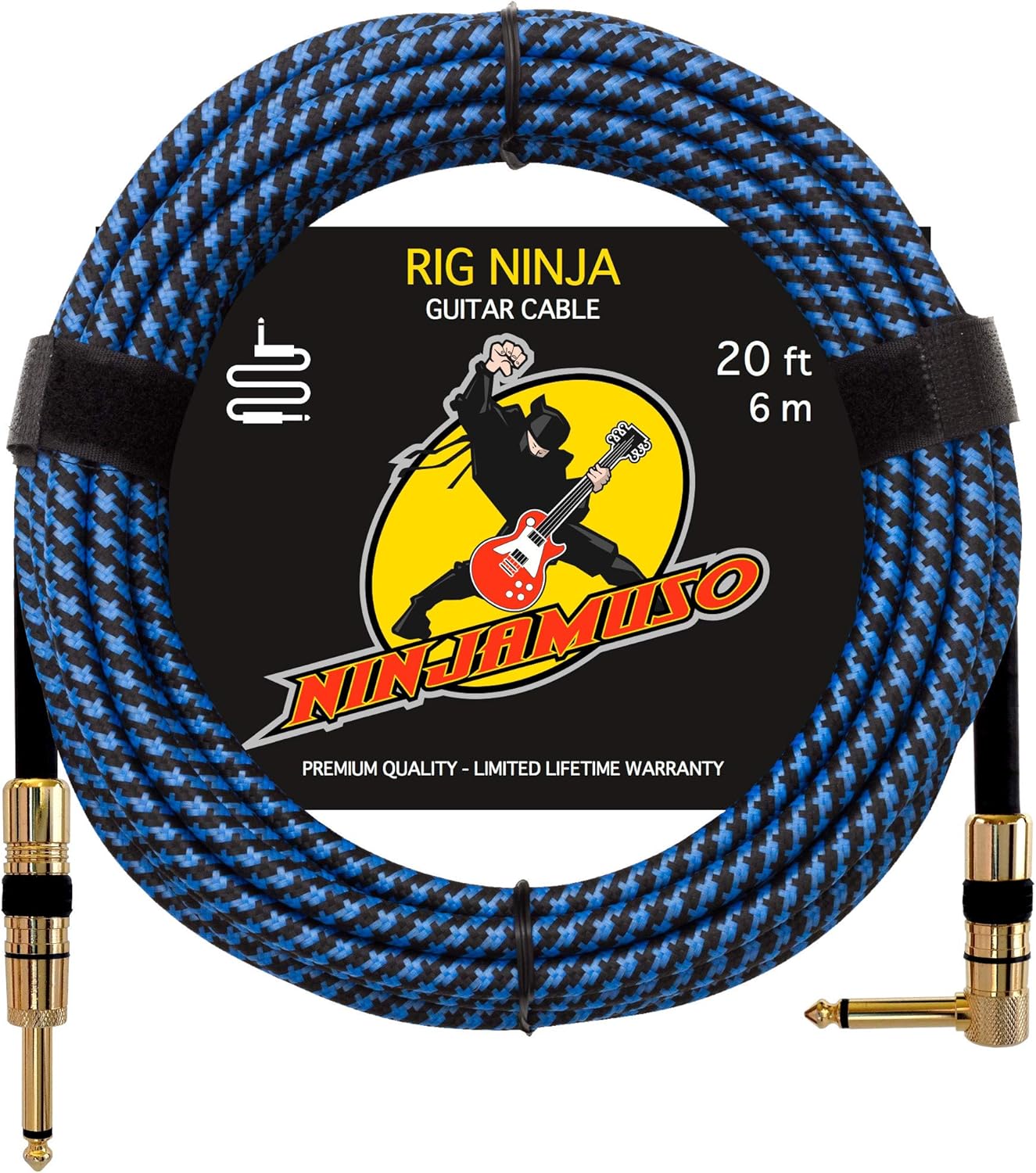 Guitar Cable For Acoustic Guitar - Amazon Com Rig Ninja 1 4 Guitar Cable By Ninjamuso 20ft Blue Right Angle Low Noise Electric And Acoustic Guitar And Bass Patch Cords 20 Feet Amp Cord For Musical Instrument