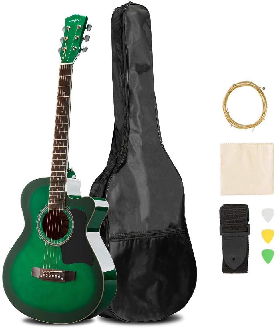 Acoustic Green Cutaway Guitar - 38 Inches Cutaway Acoustic Guitar Green With Bag And 2 Picks For Beginners Bazarfx