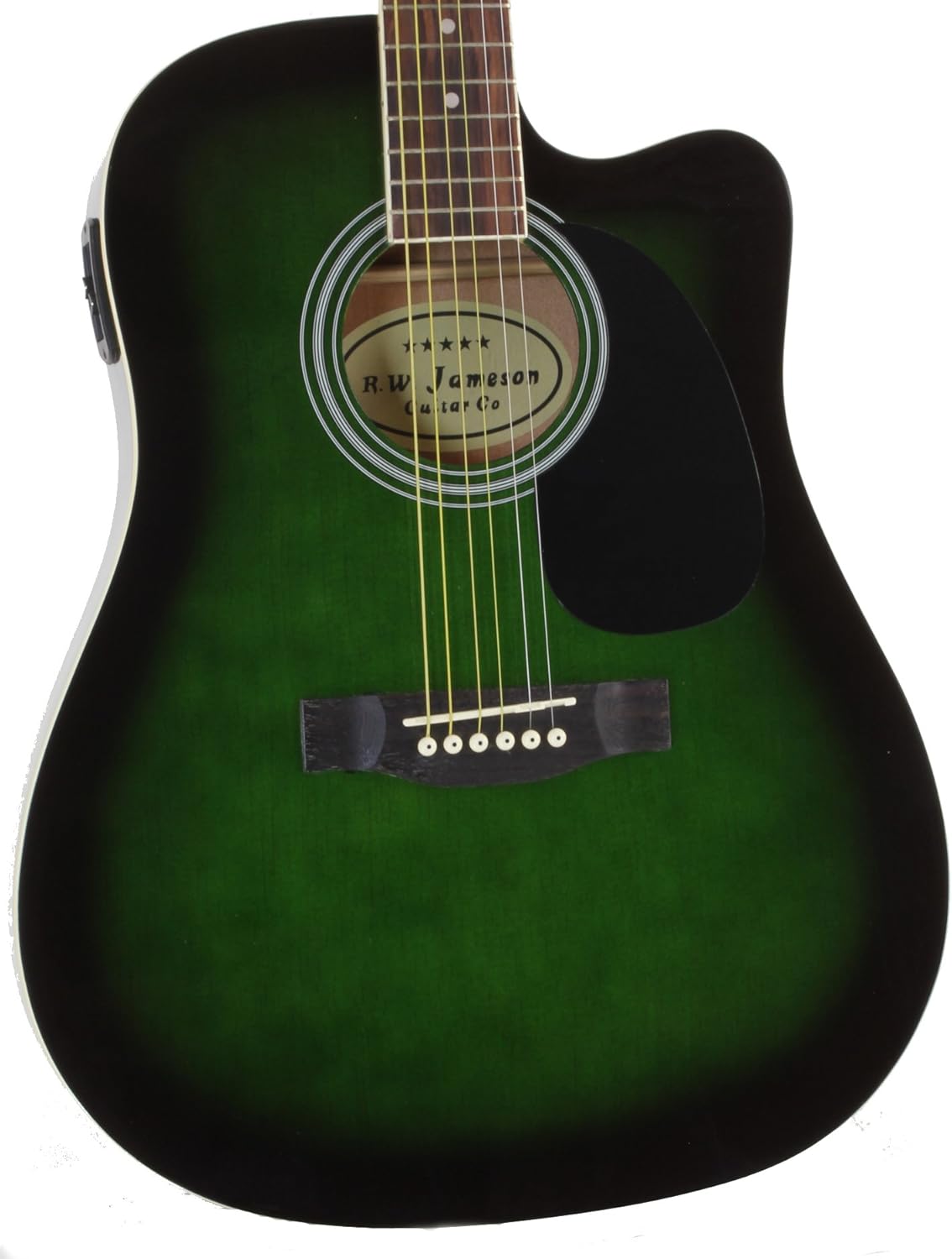 Green Acoustic Guitar - Full Size Thinline Green Acoustic Electric Guitar With Free Gig Bag Case Picks Amazon Co Uk Musical Instruments