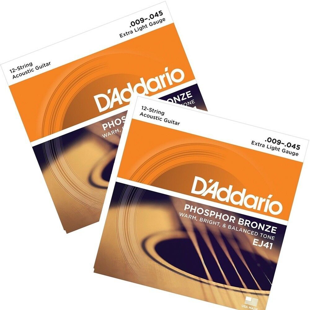 D Addario Extra Light Acoustic Guitar Strings - 2 X D Addario Ej41 12 String Phosphor Bronze Extra Light Acoustic Guitar Strings