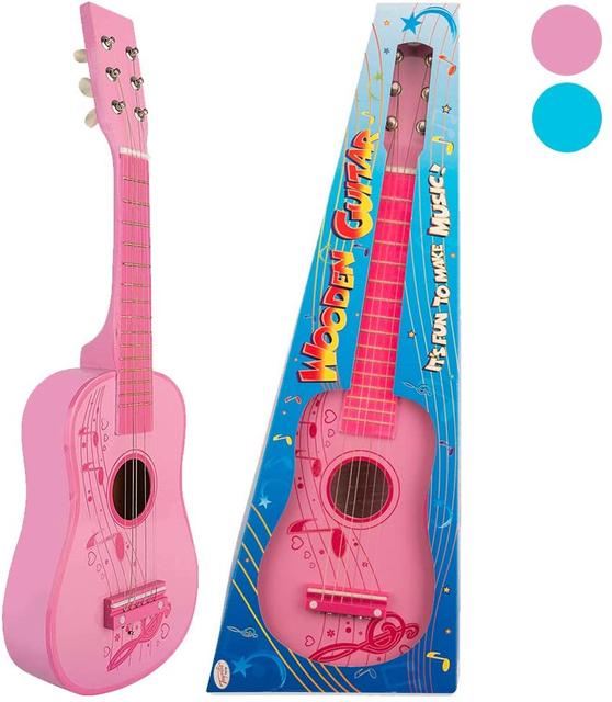 23 Inch Pink Acoustic Toy Guitar - Toyrific Kids Acoustic Guitar Blue Beginner 23 Inch Wooden Toy Instrument Guitars Strings Toys Games