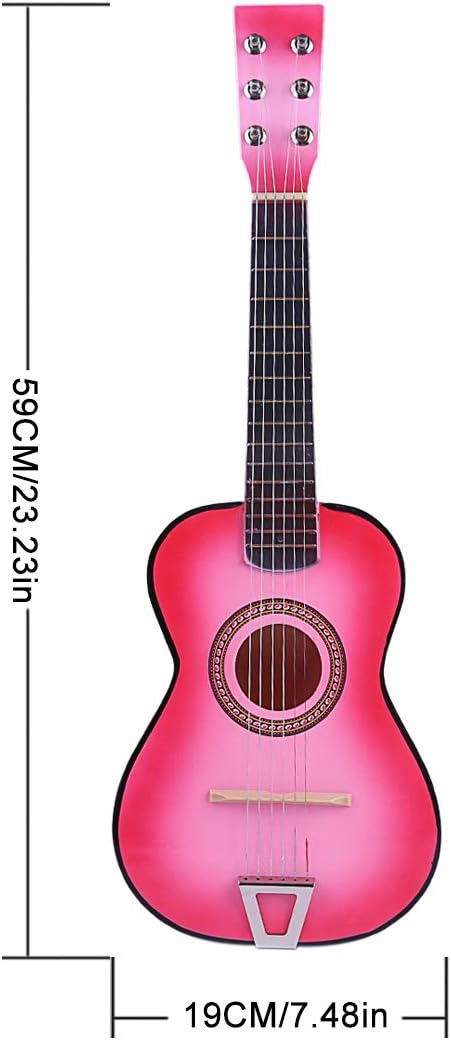 Lovely 43+ 23 Inch Pink Acoustic Toy Guitar. Pink acoustic toy guitar for kids with carrying bag and accessories & directlycheap(tm) translucent blue medium guitar pick: This item is a 23 inch folk acoustic guitar. 23 inch kids wooden acoustic guitar children toy gift w/pick 6 strings. Please note that this guitar does not come tuned.