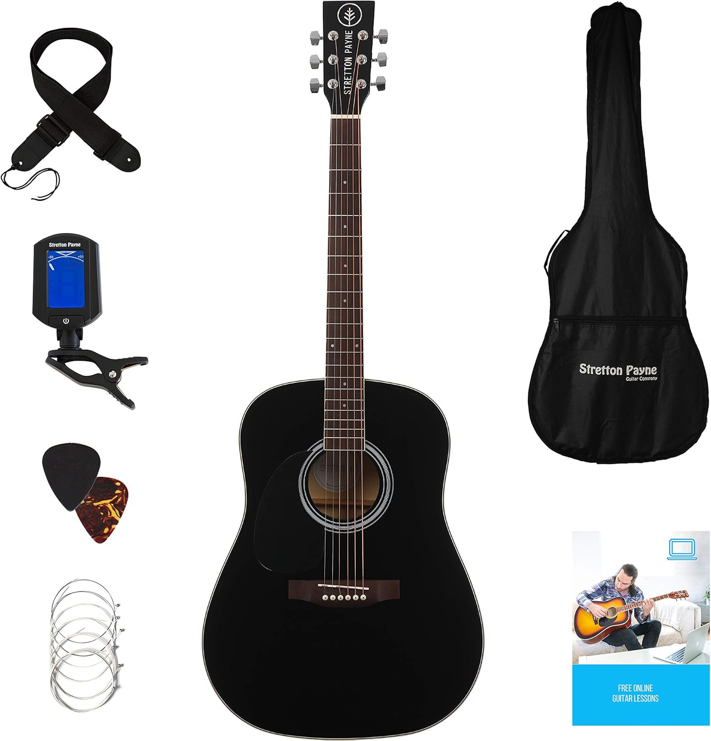Full Size Left Handed Acoustic Guitar - Stretton Payne Left Handed Dreadnought Full Size Steel String Acoustic Guitar Package D1 Black Amazon Co Uk Musical Instruments
