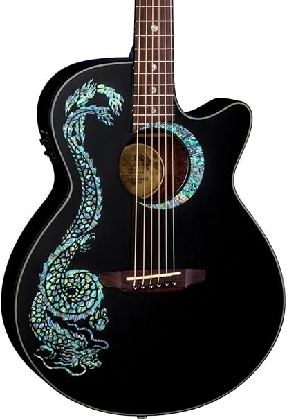 Luna Guitar Acoustic Electric Roses - Amazon Com Luna Guitars Fauna Dragon Acoustic Electric Guitar Classic Black Musical Instruments