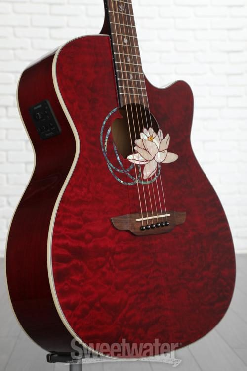 Luna Guitar Acoustic Electric Roses - Luna Flora Lotus Quilted Maple Acoustic Electric Guitar Transparent Shiraz Sweetwater