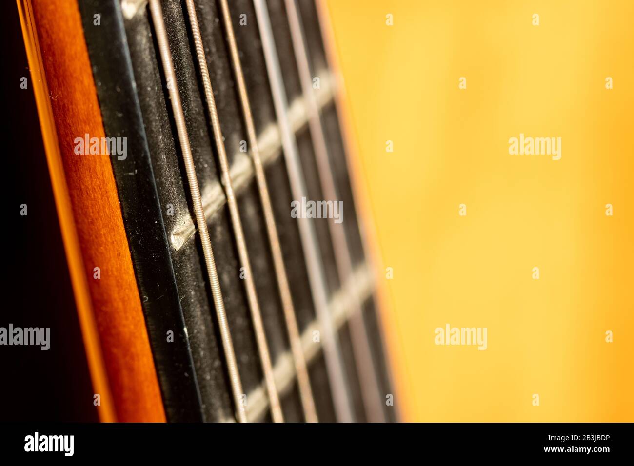 Sunlight Acoustic Guitar - Selective Focus On Strings Of Acoustic Guitar In Morning Sunlight Stock Photo Alamy