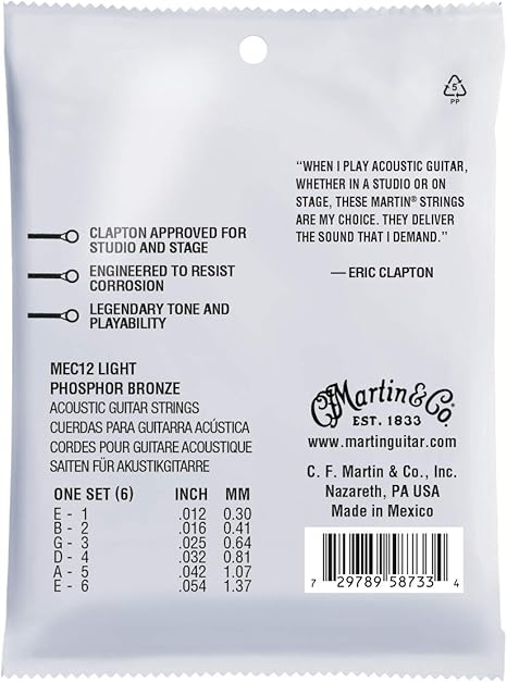 Martin Eric Clapton Acoustic Guitar Strings - Amazon Com Martin Guitar Eric Clapton S Choice Mec12 92 8 Phosphor Bronze Light Gauge Acoustic Guitar Strings Musical Instruments