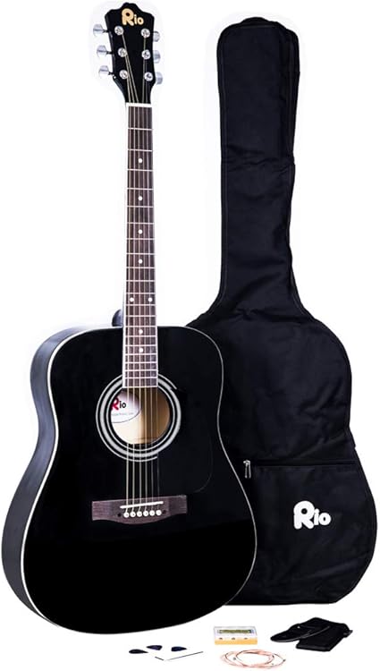 Steel String Acoustic Guitar Full Size - Rio 41 Full Size 4 4 Acoustic Guitar Dreadnought Steel String Beginner Guitar Package Pack New Black Amazon Co Uk Musical Instruments