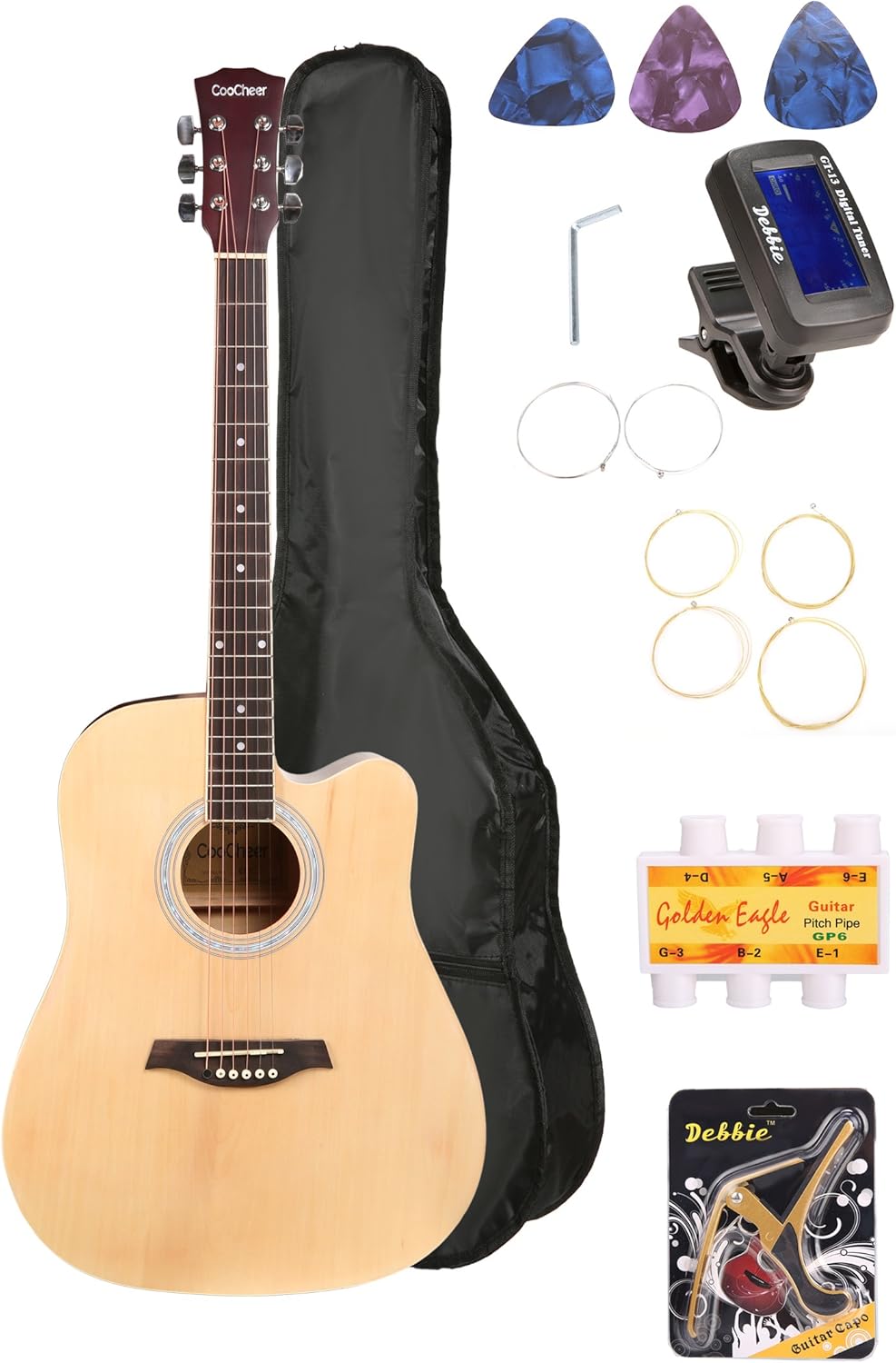 Steel String Acoustic Guitar Full Size - Amazon Com Coocheer 41 Full Size Cutaway 6 Steel Strings Acoustic Guitar Package Natural Musical Instruments