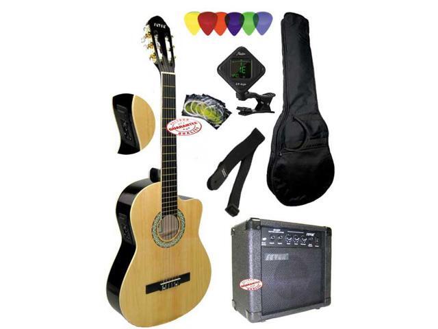 Fever Acoustic Guitar - Fever Nylon String Acoustic Electric Guitar Natural Package 20 Watts Amplifier With Bag Chromatic Tuner Set Of Strings Strap And Picks 039ceq Nt Pack Newegg Com
