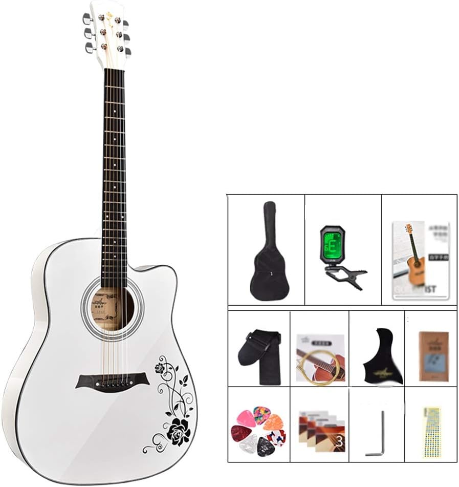 White Color Acoustic Guitar - Amazon Com Acoustic Guitar Classical Guitar Beginner Practice 38 Inches Fingerstyle Metal String With Waterproof Backpack Full Set Of Accessories 7 Colors Baiying Color White Size Long 96cm Musical Instruments