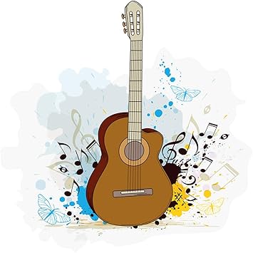 Teen Guitar Acoustic - Wall Sticker Teen Room Wall Tattoo Playful Acoustic Guitar With Notes Music Pic Amazon Co Uk Diy Tools