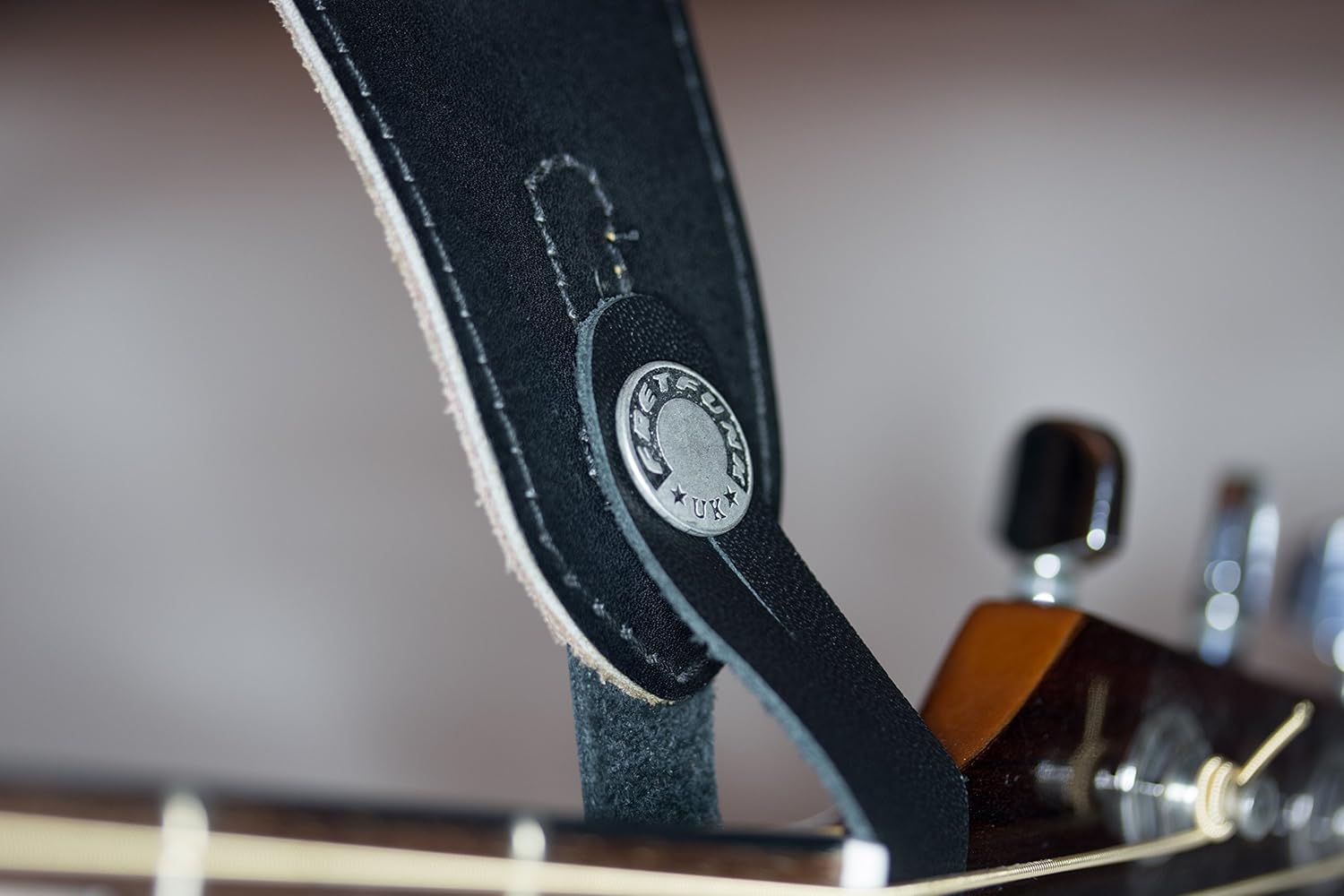 Black 2.5 leather softy guitar strap padded by leathergraft hand made in uk. Wrapping it over the headstock always felt a bit stiff and restricted for me. You get one of these funky little strap buttons to attach your strap to the headstock of the guitar of course! Our acoustic guitar strap buttons are our alternative to the old boot lace we use to attach our guitars to our straps. You get one of these funky little strap buttons to attach your strap to the headstock of the guitar of course!