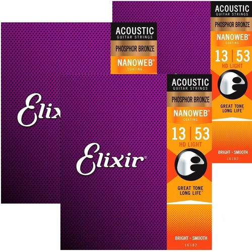 Elixir Hd Light Acoustic Guitar Strings - 3 X Elixir Nanoweb 13 53 Phosphor Bronze Acoustic Guitar Strings 16182 Hd Light