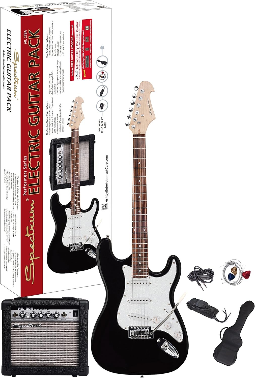 Spectrum Acoustic Electric Guitar - Amazon Com Spectrum Ail 278a Electric Guitar Pack Black Musical Instruments