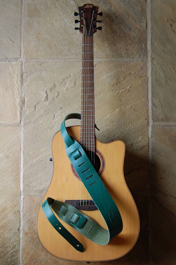 Green Acoustic Guitar Strap - Leather Guitar Strap Twin Tail Green Classic Full Grain Etsy