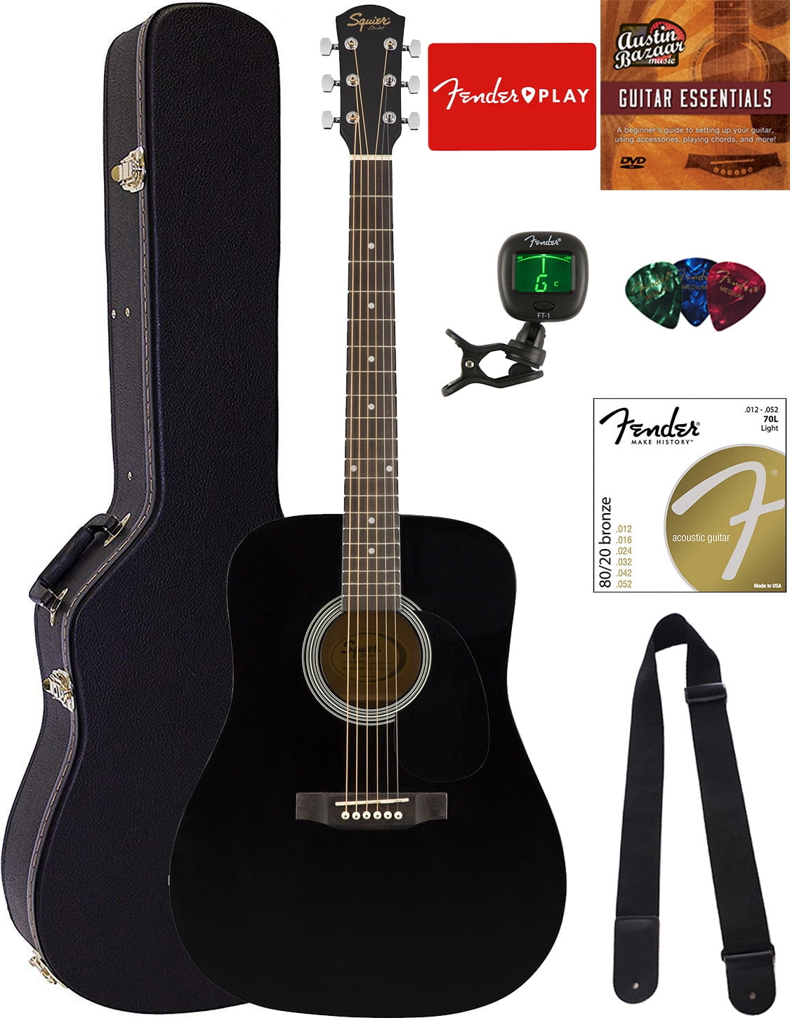 Big Acoustic Guitar Case - Fender Squier Dreadnought Acoustic Guitar Black W Hard Case Walmart Com Walmart Com