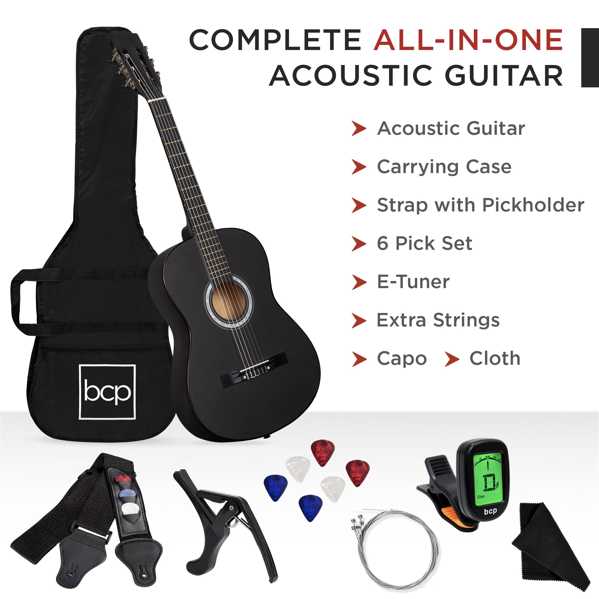 Beginners 38" Acoustic Guitar With Case - Best Choice Products 38in Beginner Acoustic Guitar Starter Kit W Case Strap Digital Tuner Strings Matte Black Walmart Com Walmart Com