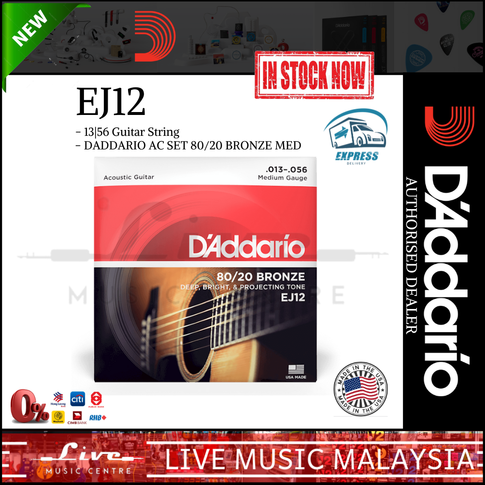 D Addario Acoustic Guitar Strings Medium - Daddario Ej12 80 20 Bronze Acoustic Strings Medium 13 56 Daddario Lazada